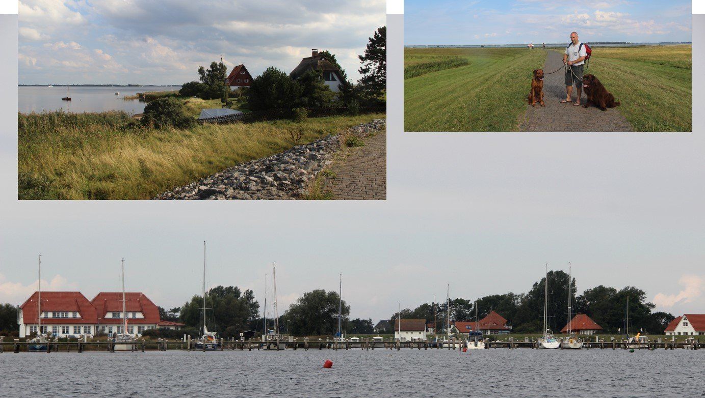 Die Hunde müssen aber seitlich über die Schläuche. Also zurück nach Vitte, Lange-Ort. Weil zu dieser Jahreszeit und diesem Wetter nicht mehr ganz so viel los ist, dürfen wir trotz Dalben längs am Steg festmachen. Der nette Hafenmeister, der uns die drei Boxen zum Preis von einer gibt, ist lediglich besorgt, wenn der Sturm kommt. Dieser würde das Boot gegen den Steg schleudern.