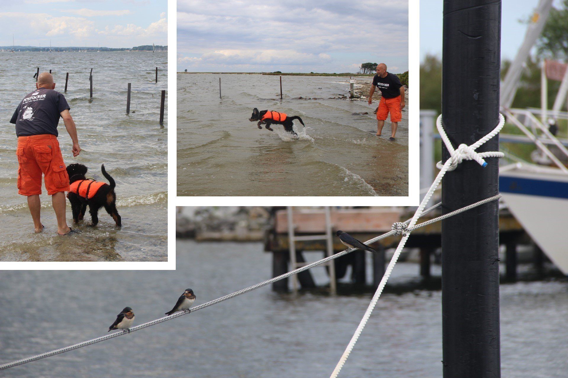 Eine Schwalbe macht noch keinen Sommer... aber drei? Ja, es ist sehr warm. Timsen entwickelt unheimlichen Spaß am Wasserplantschen.