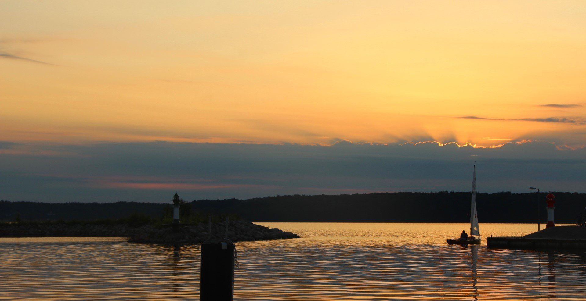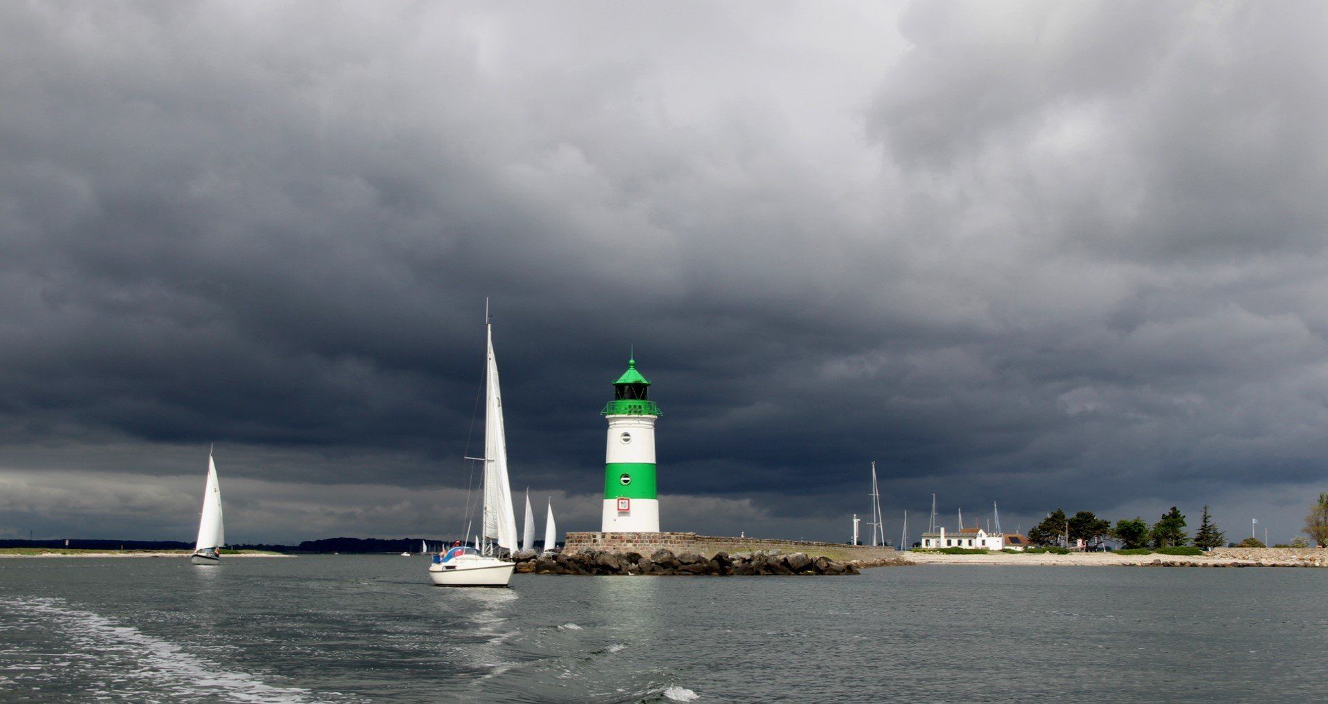 Rückblick zur Schlei - wir fahren dem Wetter einfach weg. Irgendwann taucht das Leuchtfeuer Kalkgrund in der Einfahrt Flensburger Förde auf.
