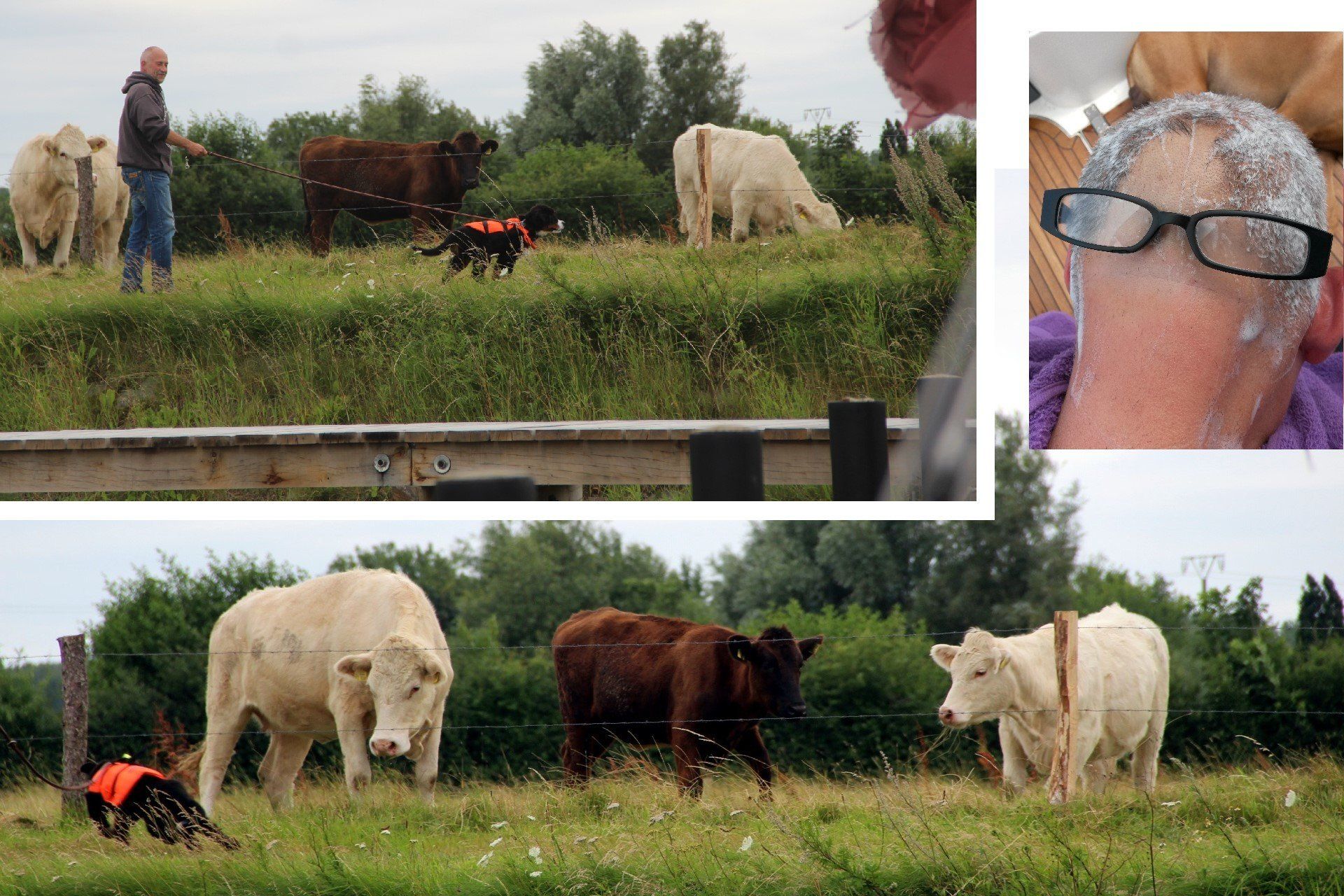 Auch unmittelbar am Hafen gibt es eine Weide mit Kühen, die Timsen sich natürlich sehr interessiert ansieht. Aber wehe, alle gucken ihn gleichzeitig an!