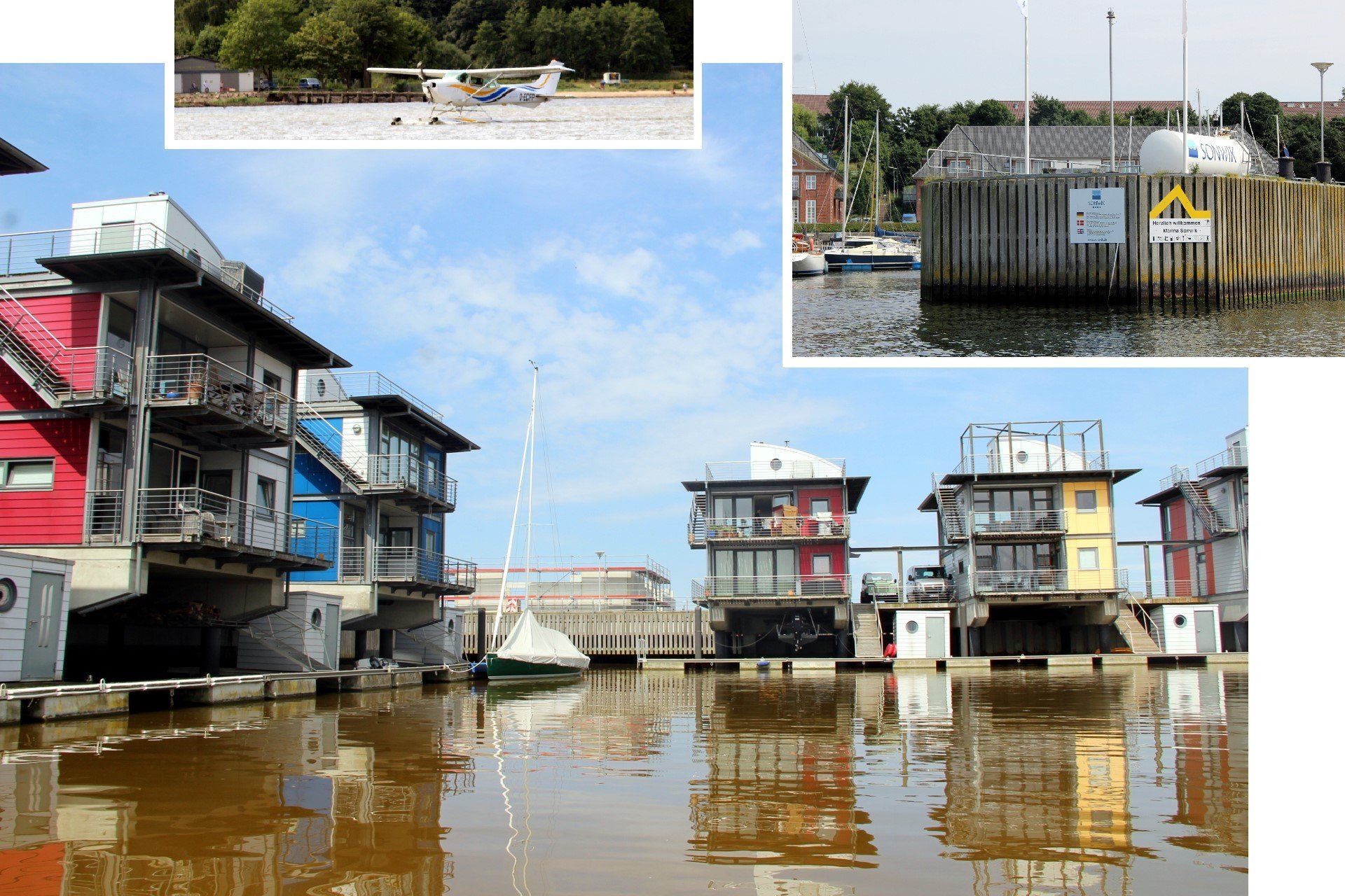 Hafen Sonwik mit Fingerstegen und SB-Tankstelle. Hier tanken wir dann mal.