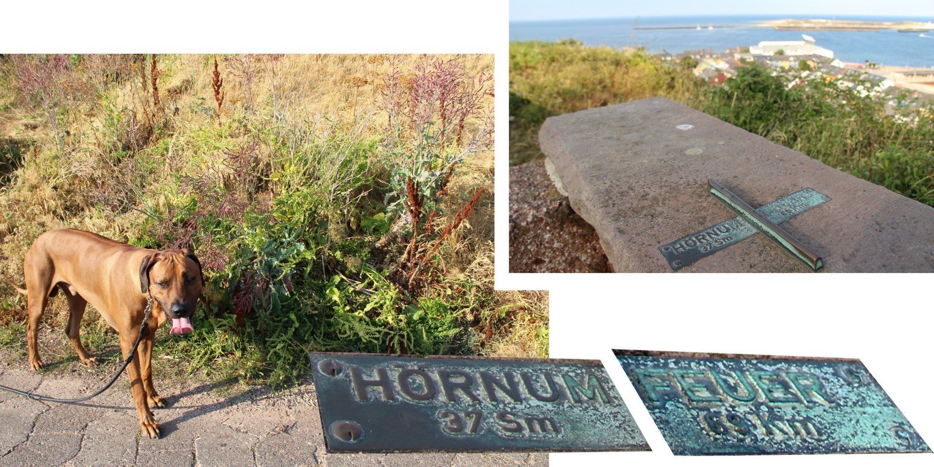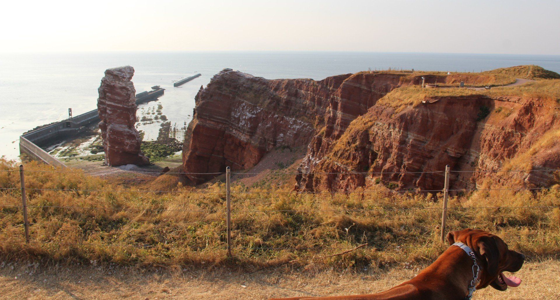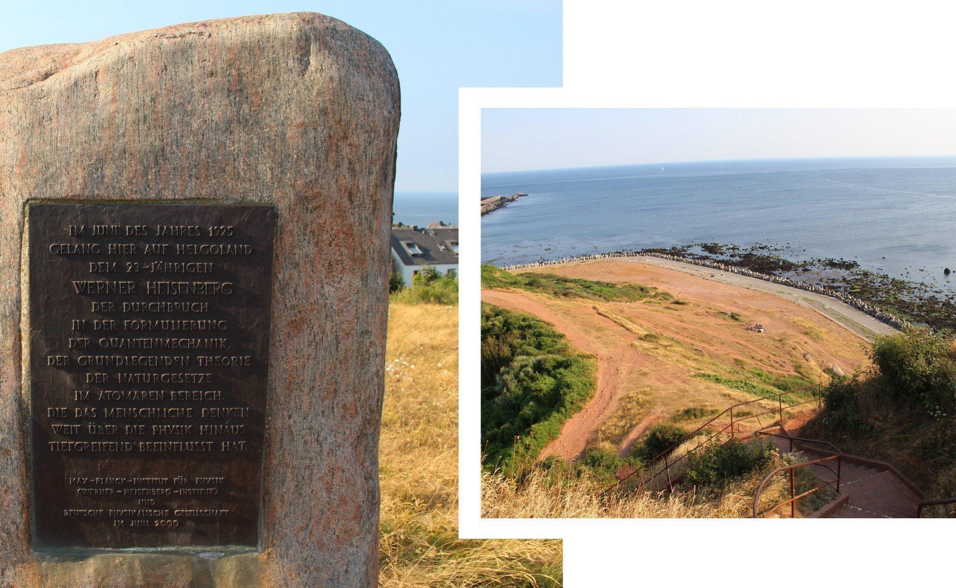 Ganz hinten ist schon die lange Anna zu sehen. Unterwegs findet man einige Hinweistafeln zur Geschichte Helgolands.