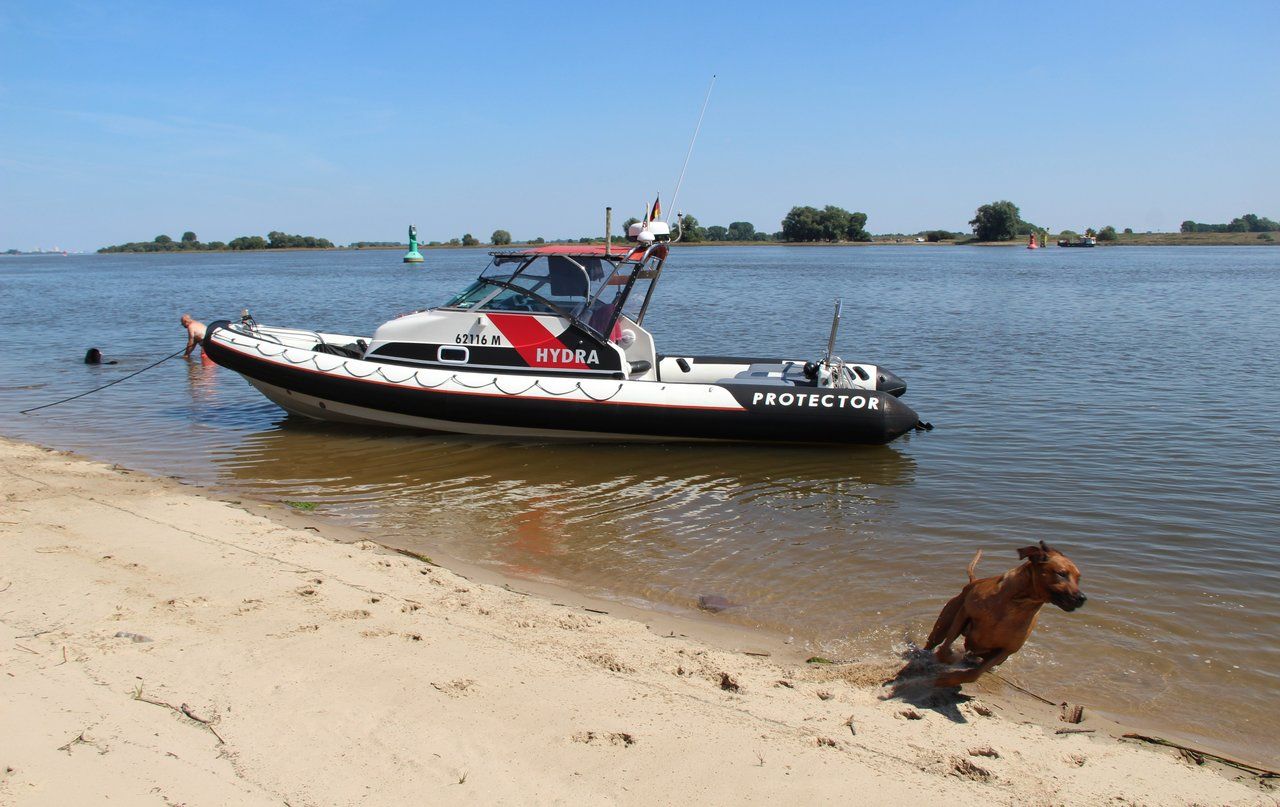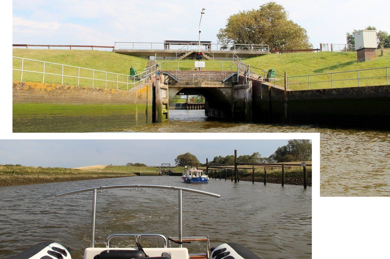 Vor der Schleuse belehrte uns noch der Schleusenwärter, aus wie vielen Teilen sich der Wasserweg zusammensetzt und dass man höchstens 8 km/h zu fahren hat. Er habe schlechte Erfahrungen mit Schlauchbootfahrern gemacht und konspirativ arbeitende Angler würden ihm sofort Meldung machen bei Geschwindigkeitsüberschreitungen. In Otterndorf würde in diesem Fall dann schon die Wasserschutzpolizei auf uns warten!
