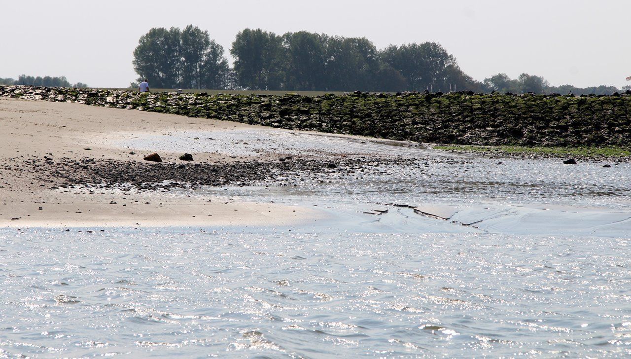 Auf der anderen Seite ist tatsächlich nur noch verdammt wenig Wasser vorhanden. Wir passen ganz genau auf, dass wir die Wasserstraße nicht verlassen.