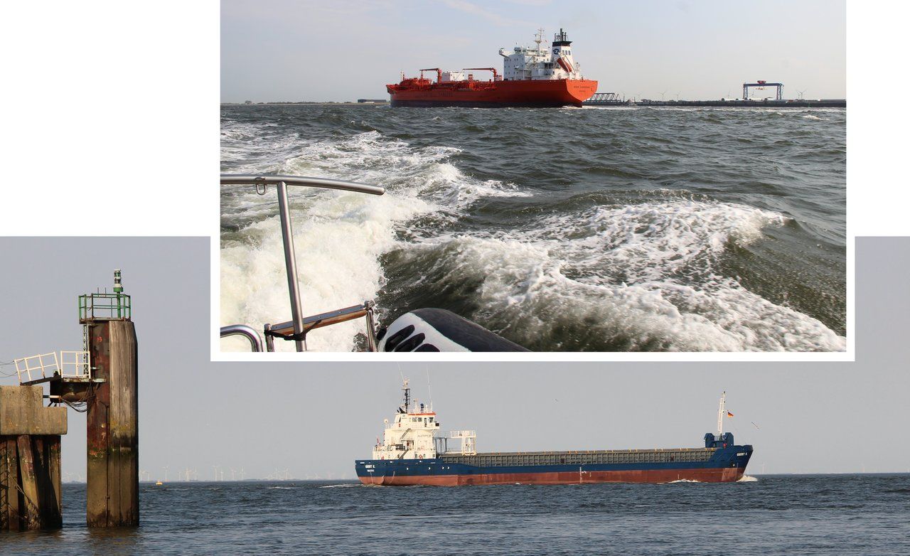 Wir "zittern" uns vorsichtig bis ins tiefe Fahrwasser. Kurze Zeit später haben wir es geschafft. Genügend Wasser vorhanden, also erst mal nach Cuxhaven! Endlich mit den Großen tanzen. Tanzen im wahrsten Sinne des Wortes, denn auf der Elbe erwartete uns eine 3-Meter-Welle.