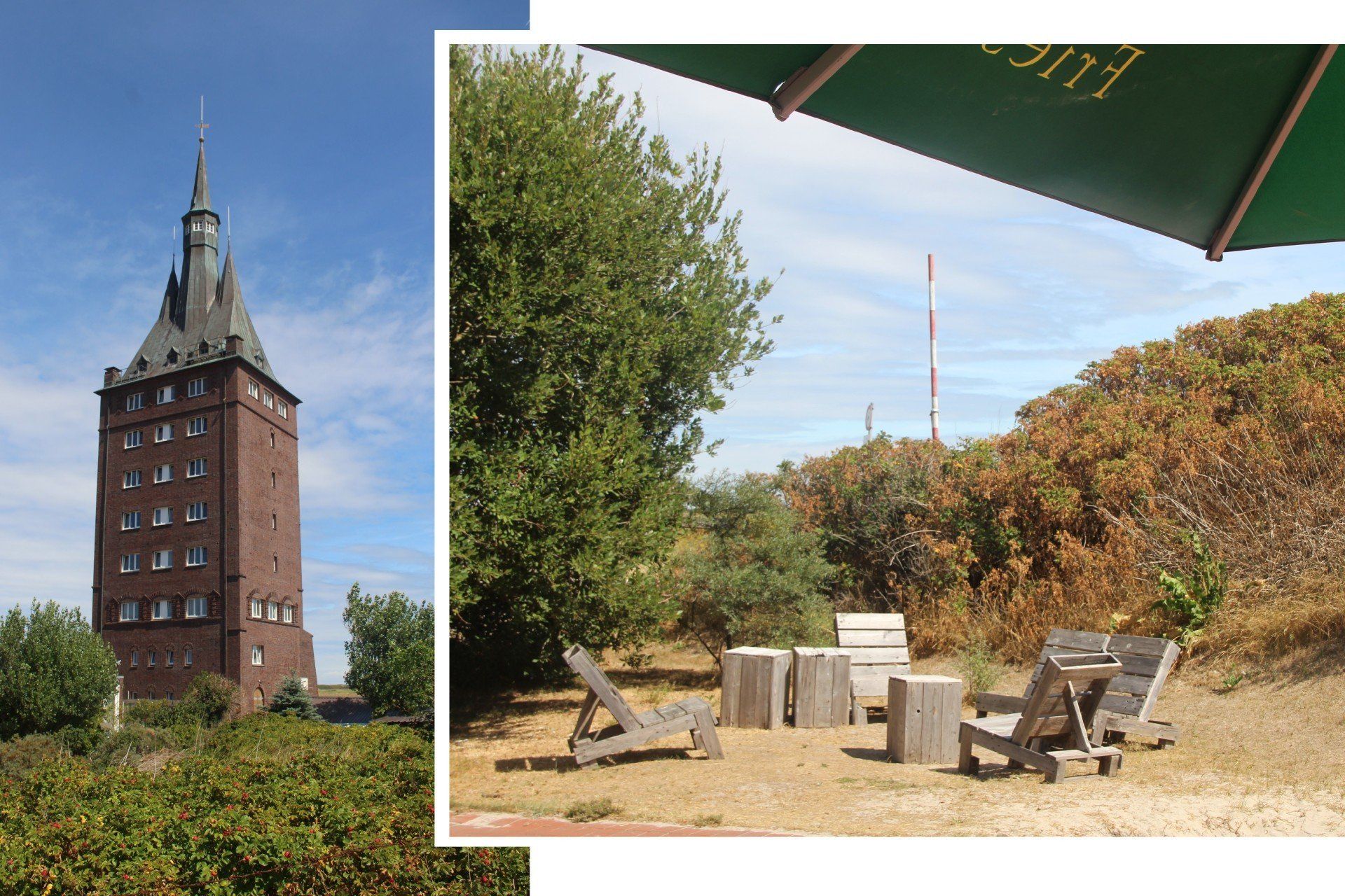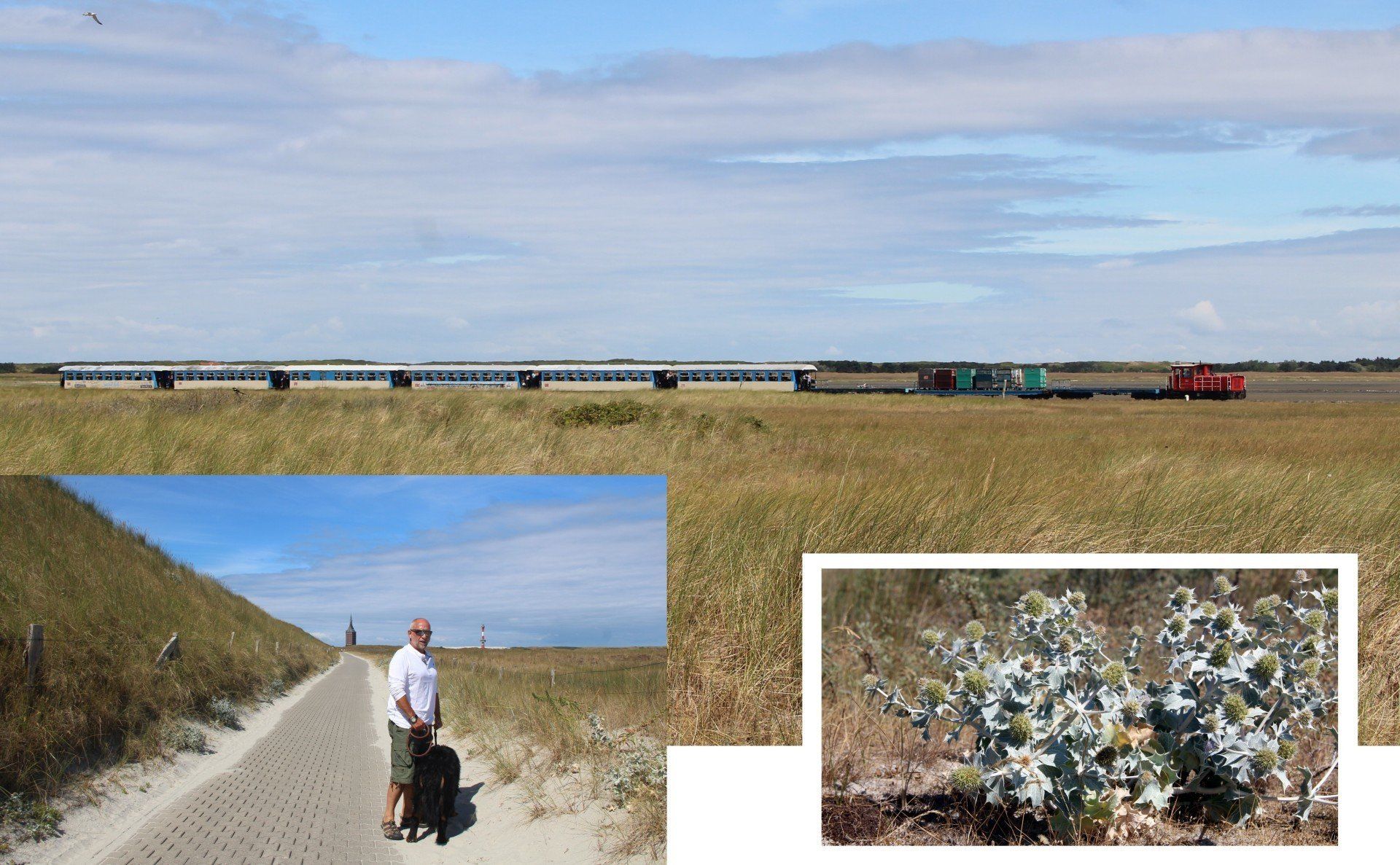 Gegen 18:30 Uhr fahren wir mit der völlig überfüllten Inselbahn wieder zurück zum Hafen. Alle, wirklich alle Tagesgäste auf der Insel fahren mit genau dieser Bahn zurück, weil sie ja noch mit dem Schiff zurück ans Festland, nach Bensersiel, müssen. Also voll, voll, voll.