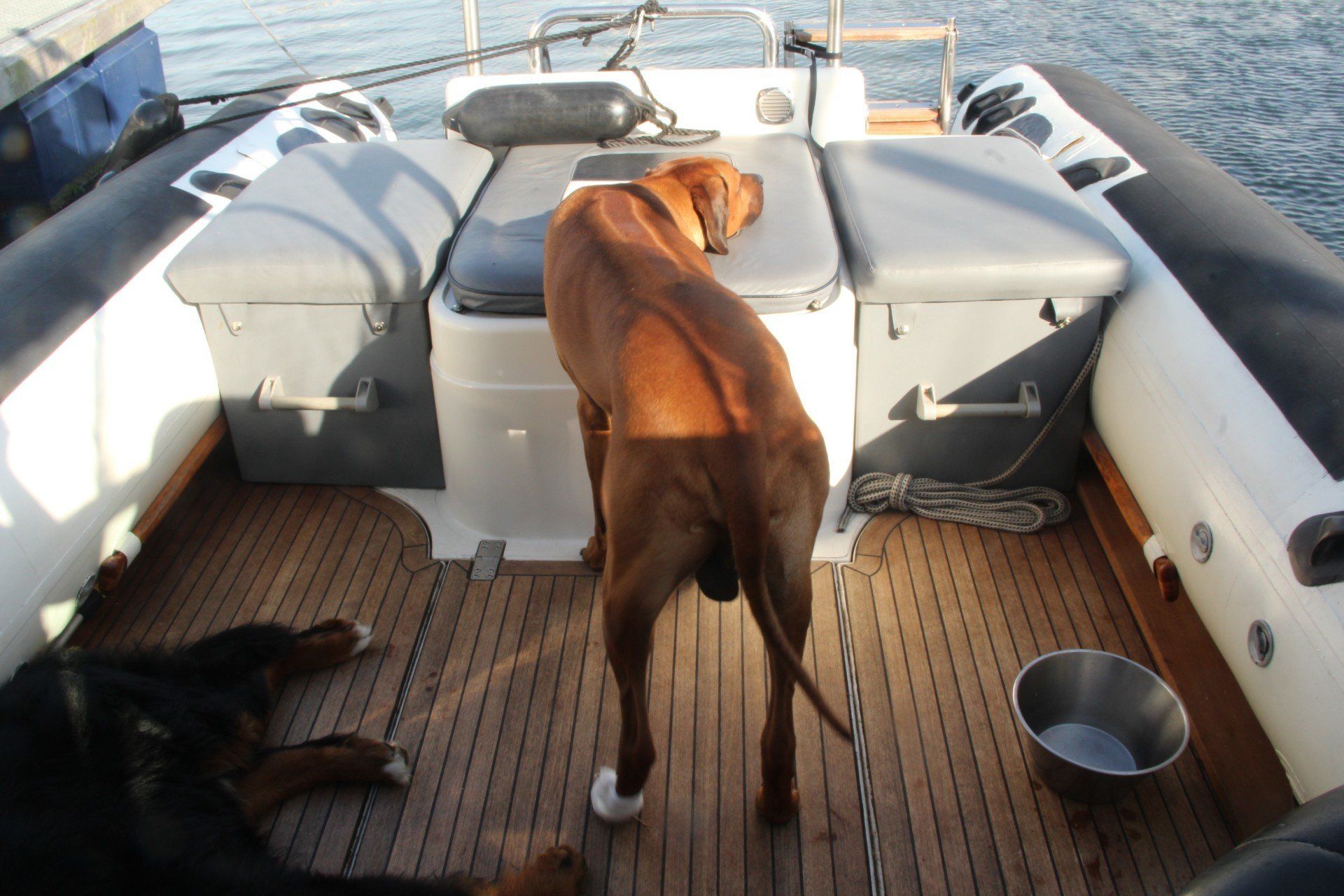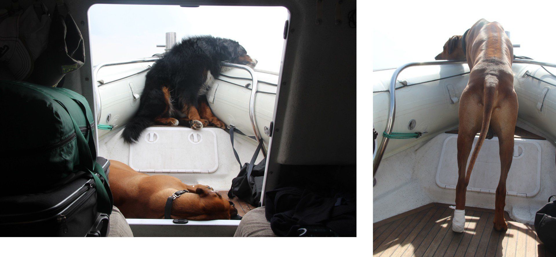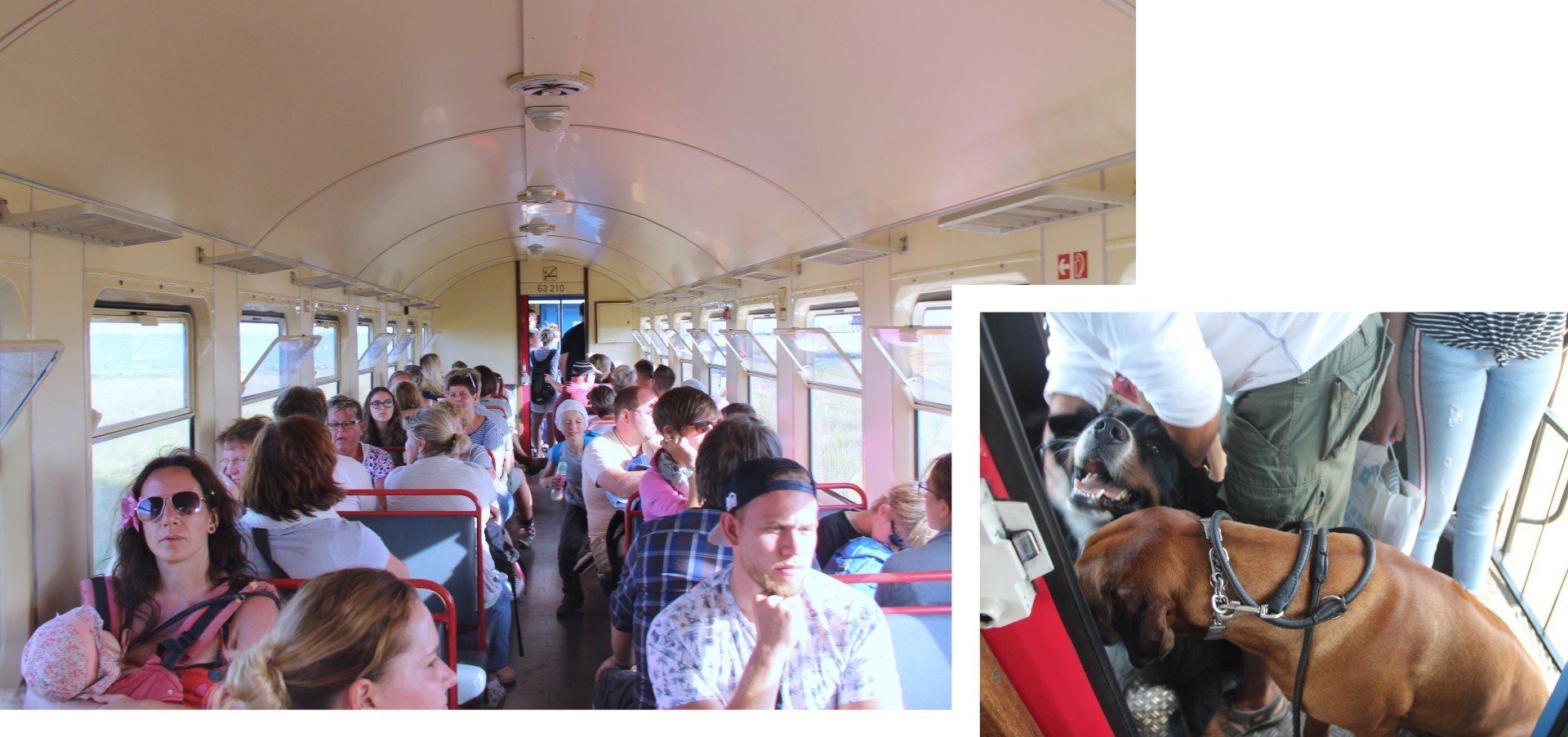 Gerade so passen wir mit den großen Hunden in die Bahn, Cuppers Schwanz allerdings passt nicht mehr "inside", er schrappt damit tatsächlich an der Bahnsteigkante entlang.