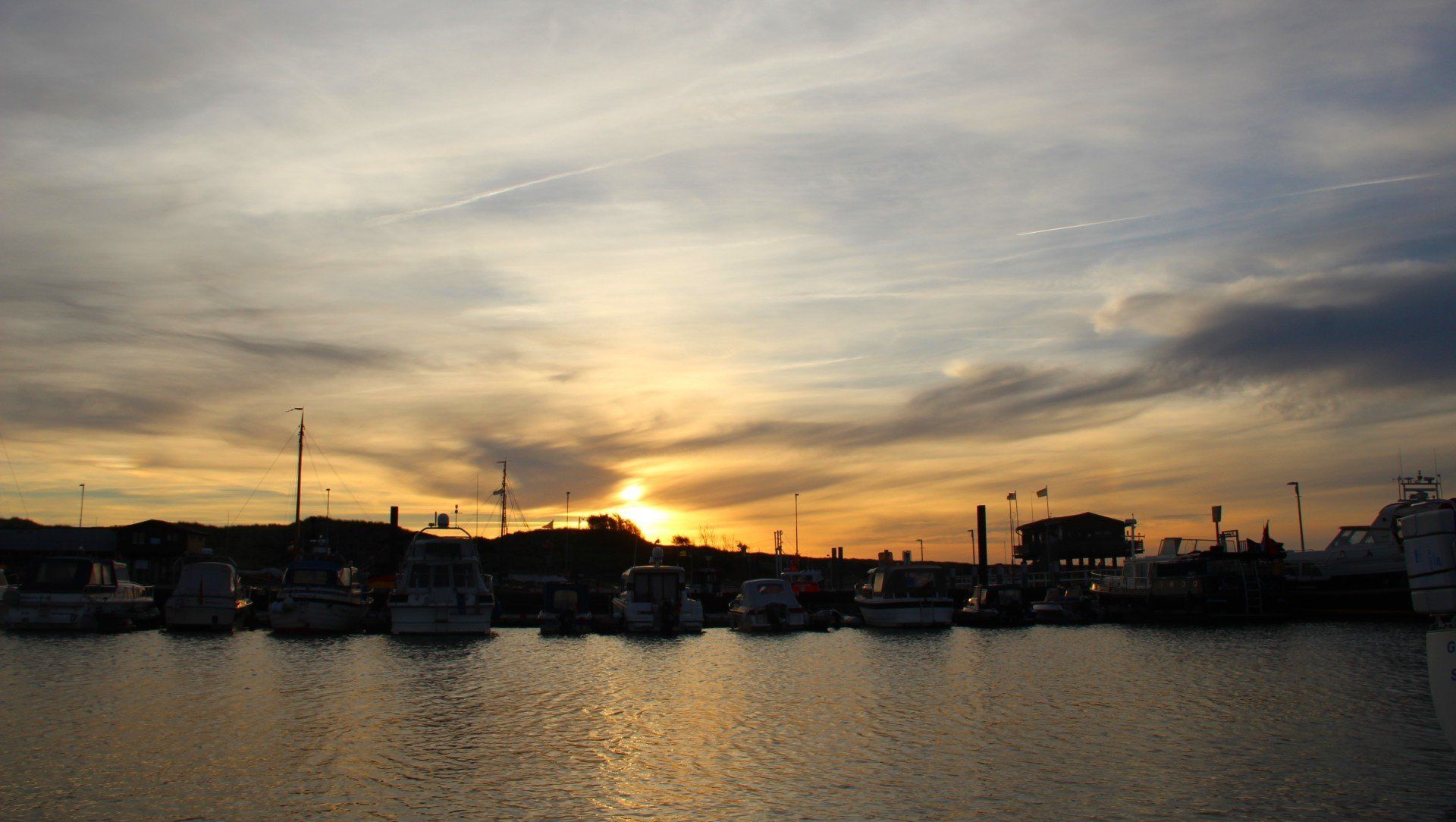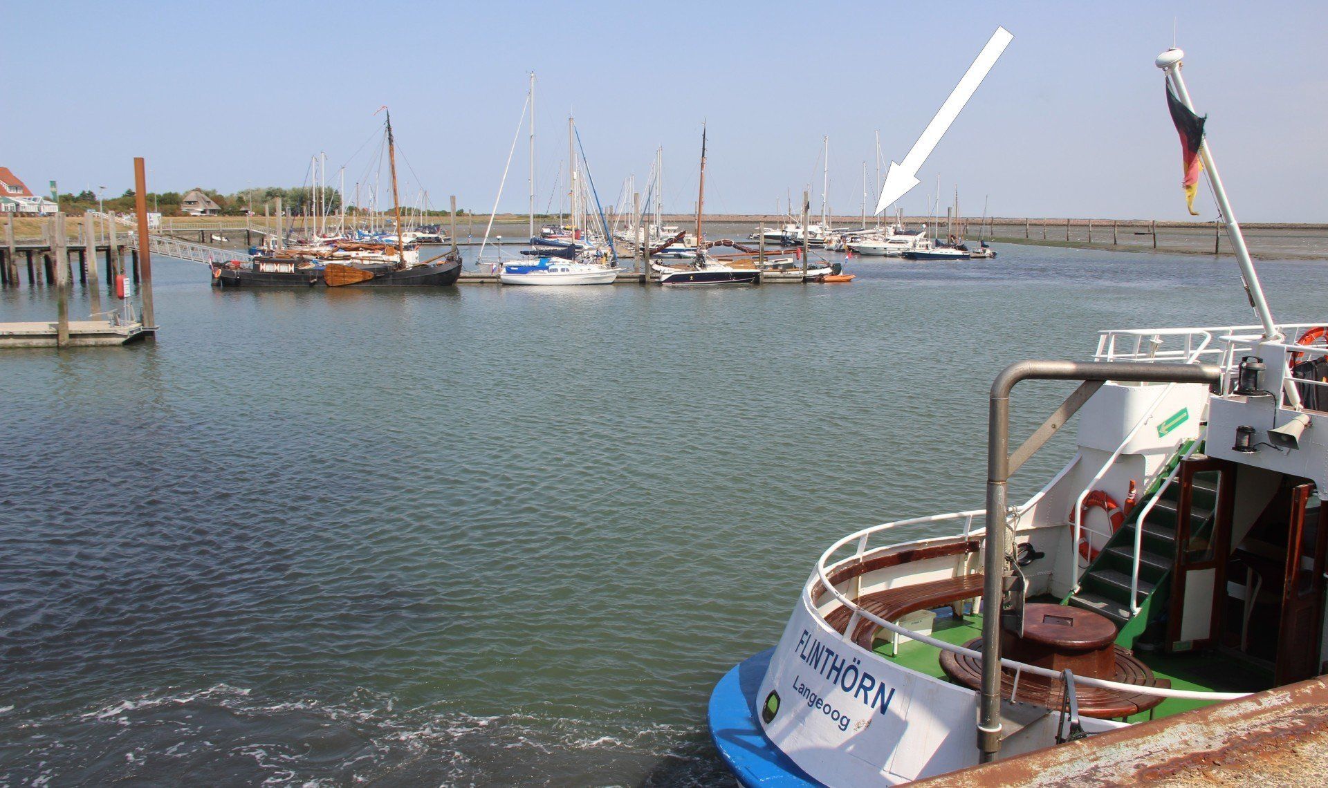 Zweiter Tag auf Langeoog. Ein Plattbodenschiff versucht bei ordentlich Querwind anzulegen, was bei ganz wenig PS nicht wirklich klappen will. Alle Bootseigner stehen auf den Stegen, um irgendwie die Karambolage mit dem eigenen Boot zu vermeiden und natürlich beim Anlegen zu helfen.