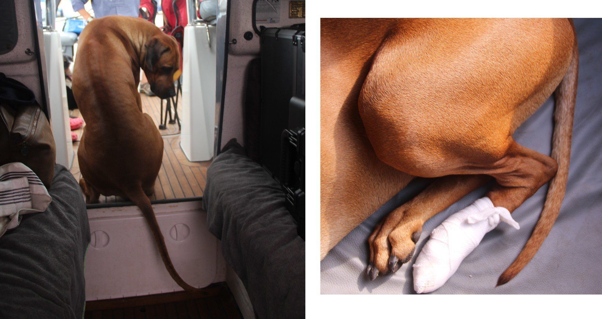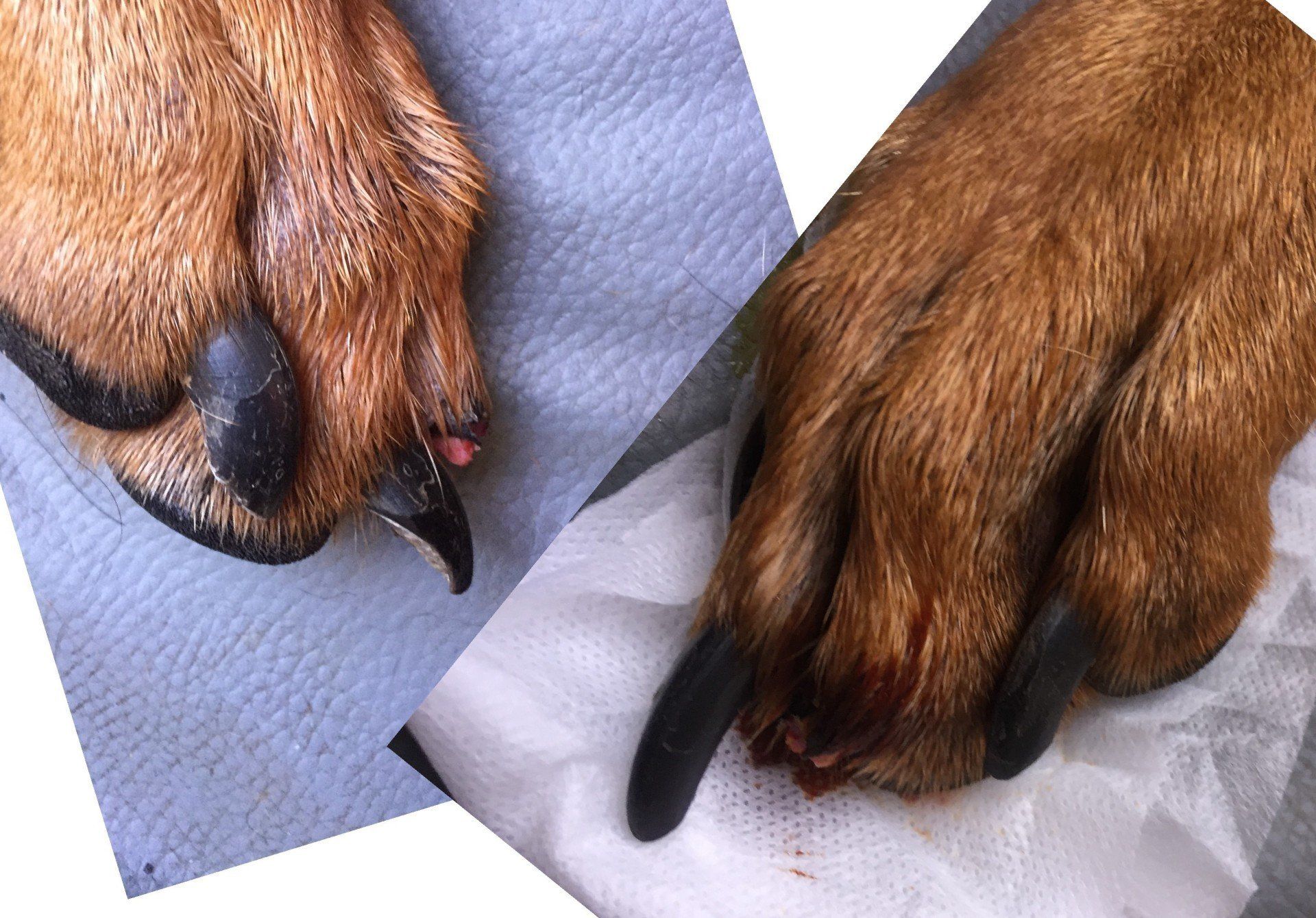 Nach gründlicher Untersuchung aller Gliedmaßen aller Hunde stellen wir fest, dass Cuppers achtere Backbord-Mittelkralle nicht mehr an der Pfote ist.