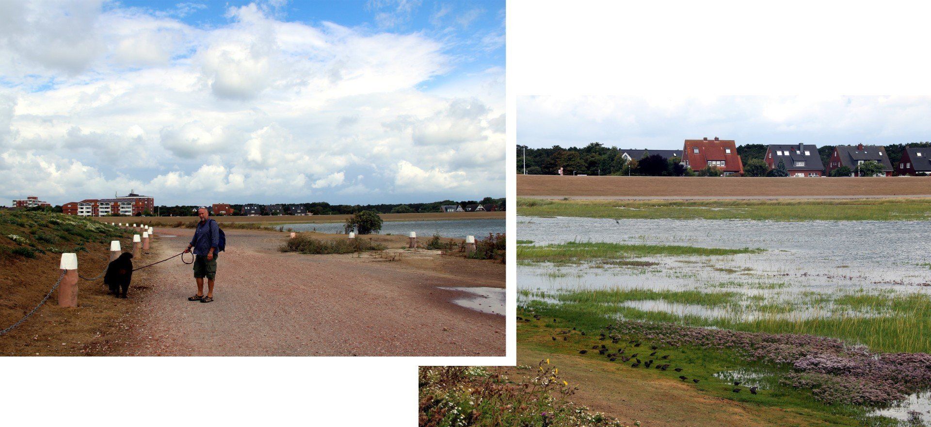 Heute wollen wir uns Wangerooge ansehen. Zu Fuß geht es am Wasser entlang Richtung Wangerooge Stadt.