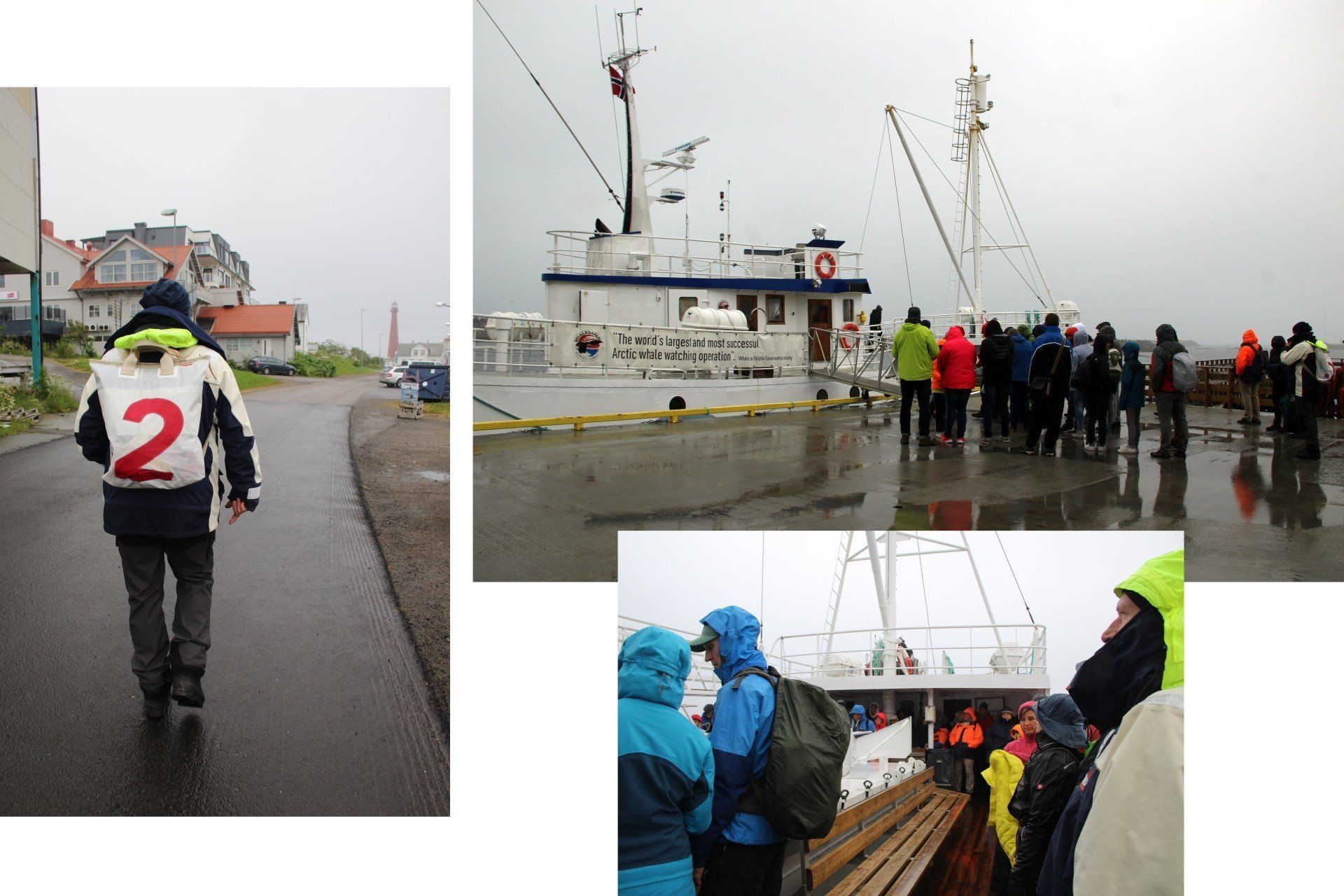 Um 16:00 Uhr soll es losgehen. Alle treffen sich planmäßig eine Stunde vorher. Dann werden die Menschen in drei Sprachgruppen aufgeteilt: Norwegisch, Englisch, Deutsch. Jede der drei Gruppen bekommt eine Führung durchs "Museum", welches dem Schiff vorgelagert ist. Und wer führt uns? Unsere Studentin vom Vortag, die ihren ersten Arbeitstag hier verbringt. Gut macht sie das. Erzählt uns viel über die Wale und deren Verhalten und darüber, wann wir sie sehen werden und worauf zu achten ist usw.