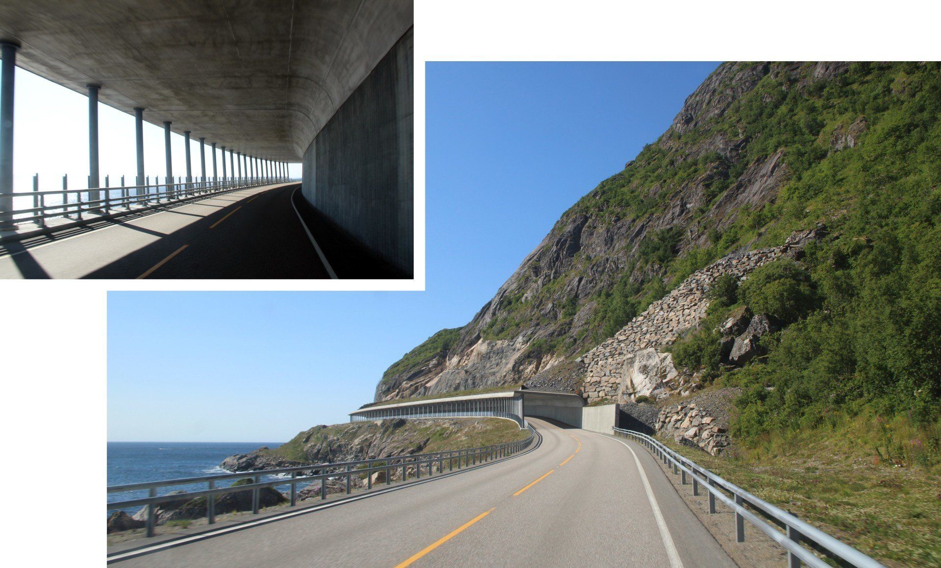 Ein Bogen über die E 6 symbolisiert die Pforte ins Nordland. (Übergang Provinz Nordland / Nord-Tröndelag)