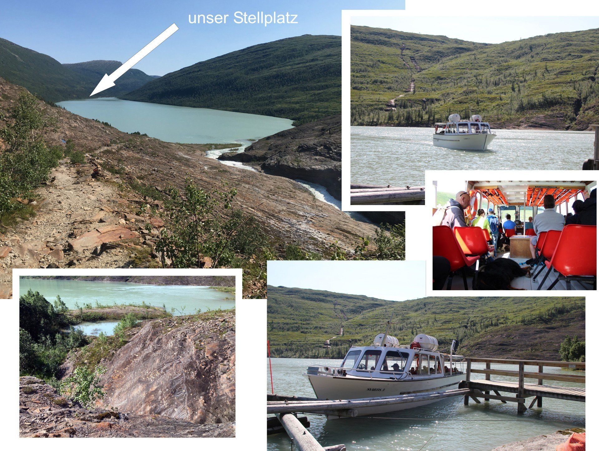 Am Svartisen-Gletscher. Er hatte mal das gesamte Gebiet überlagert. Jetzt reicht die Gletscherzunge Austerdalsien nicht mehr hinab bis zum See. So hat das Klima alles verändert.