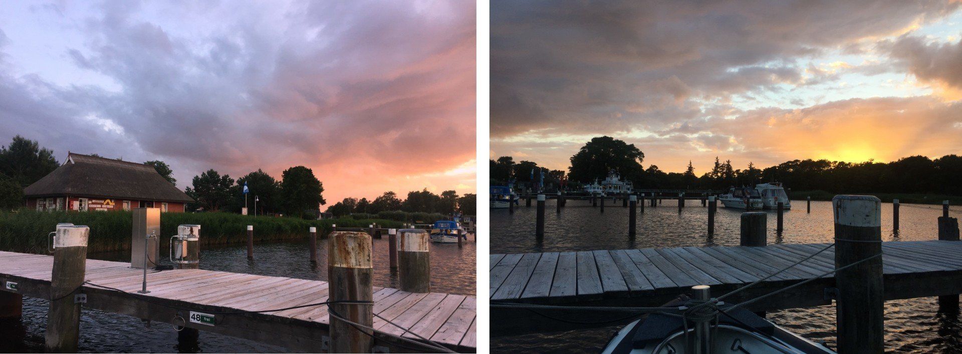 Nach einem schönen Frühstück geht es dann über die Bodden und durch den Prerowstrom nach Prerow. Das Wetter ist durchwachsen. Aber es bleibt trocken bei 20° C