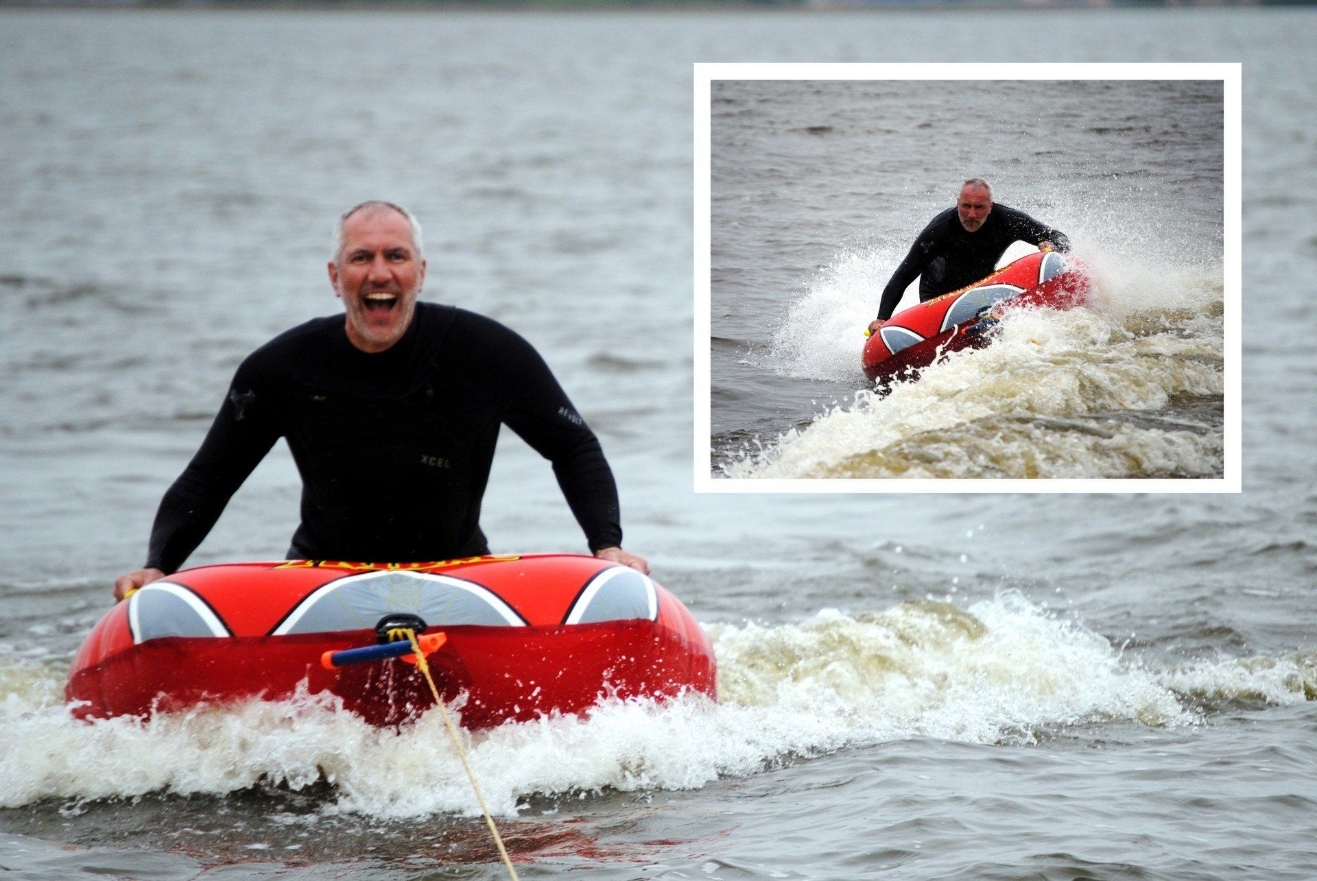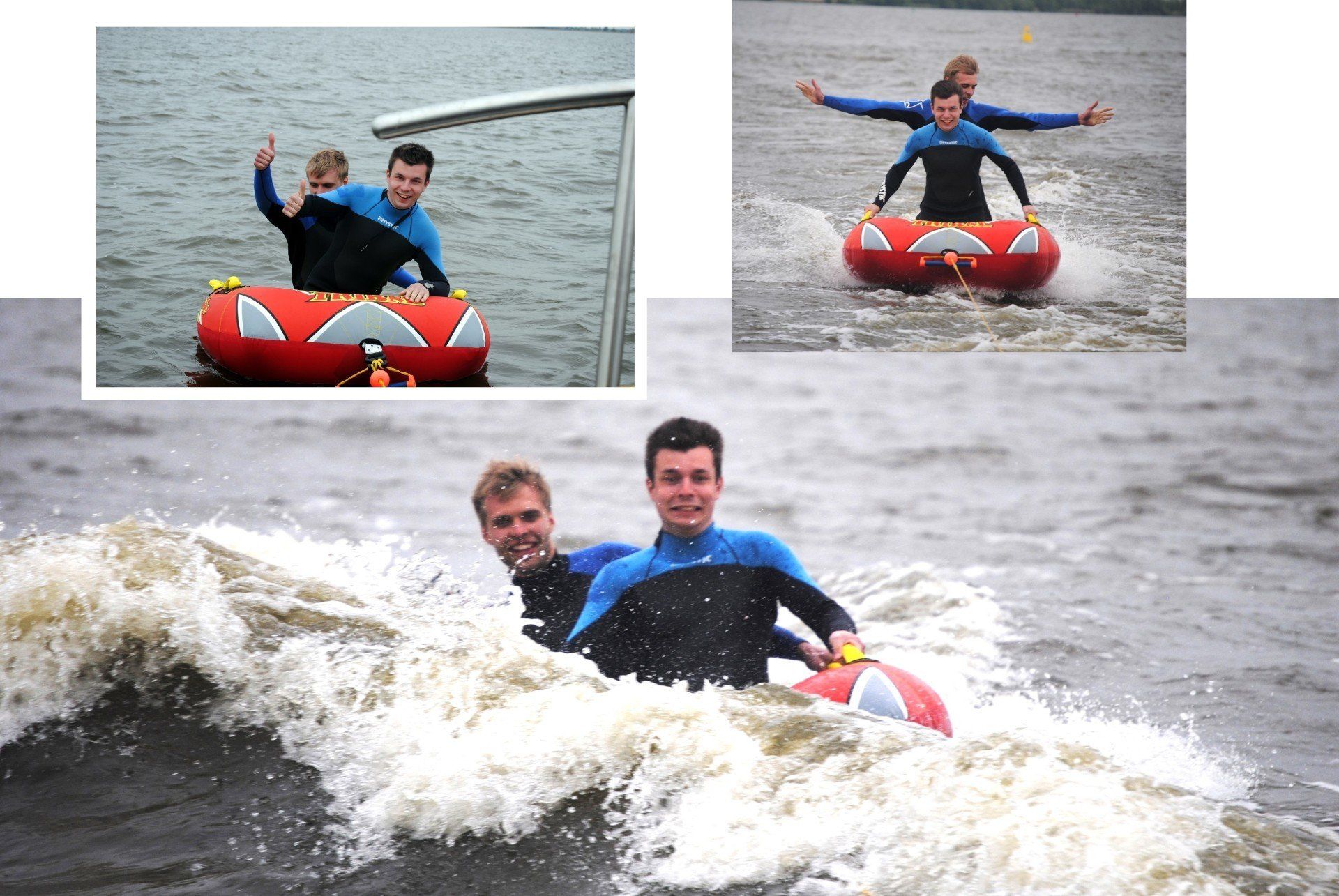 Dann ist der nächste dran! Thomas kann wegen Größe und Gewicht nur alleine auf das Tube, welches für zwei Personen bzw. bis 120 kg zugelassen ist ;-)