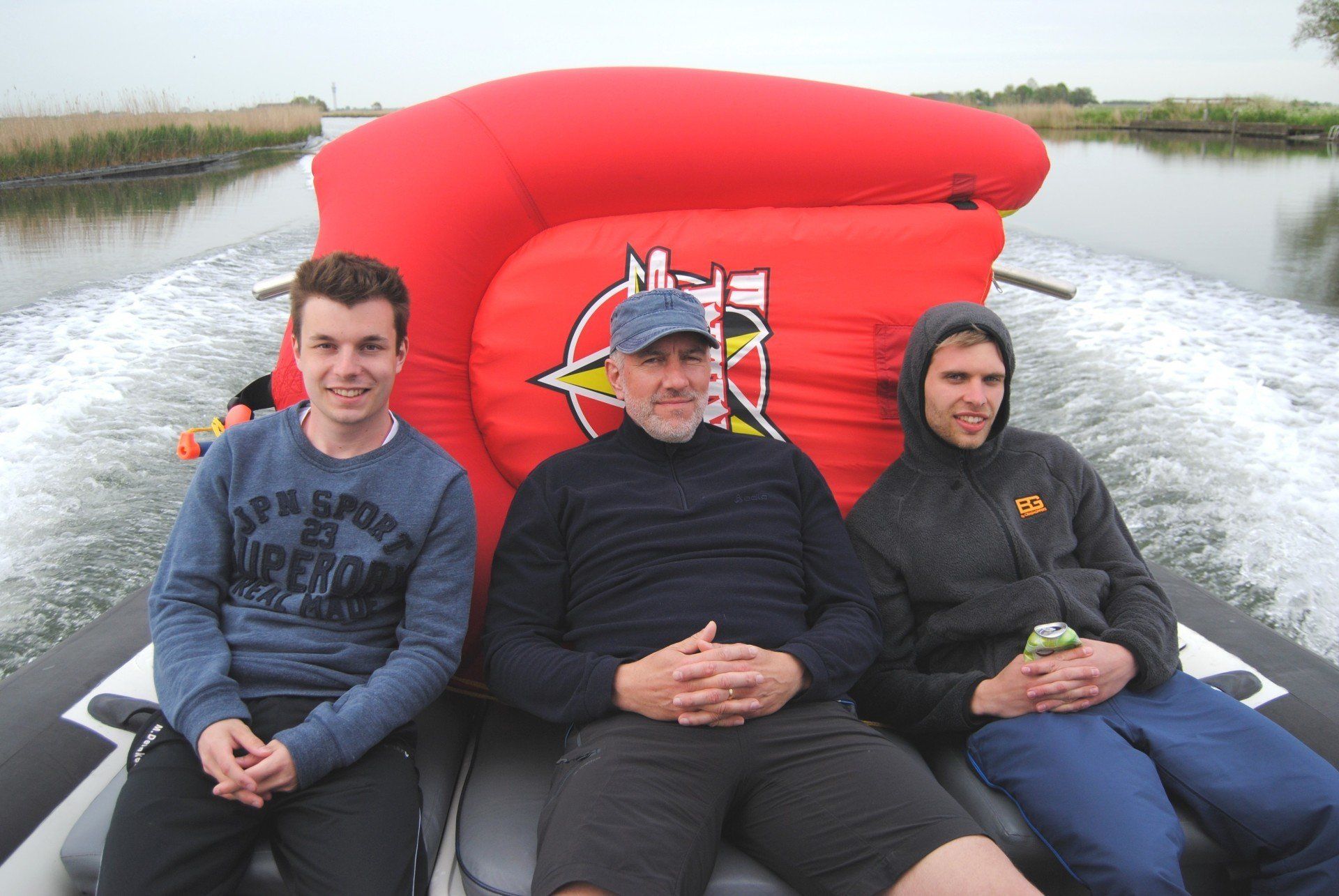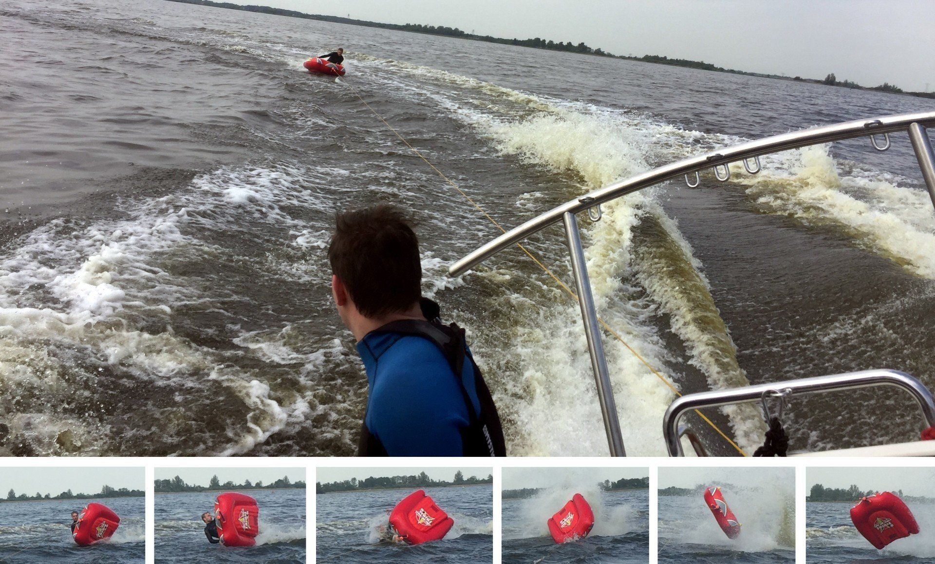 Und dann ist es soweit. Wir haben nach einer großen Rundfahrt das Slotermeer erreicht. Hier gibt es eine ausgewiesene Wasserskistrecke. Also darf man Tube fahren. Auch Geschwindigkeit spielt hier keine Rolle!