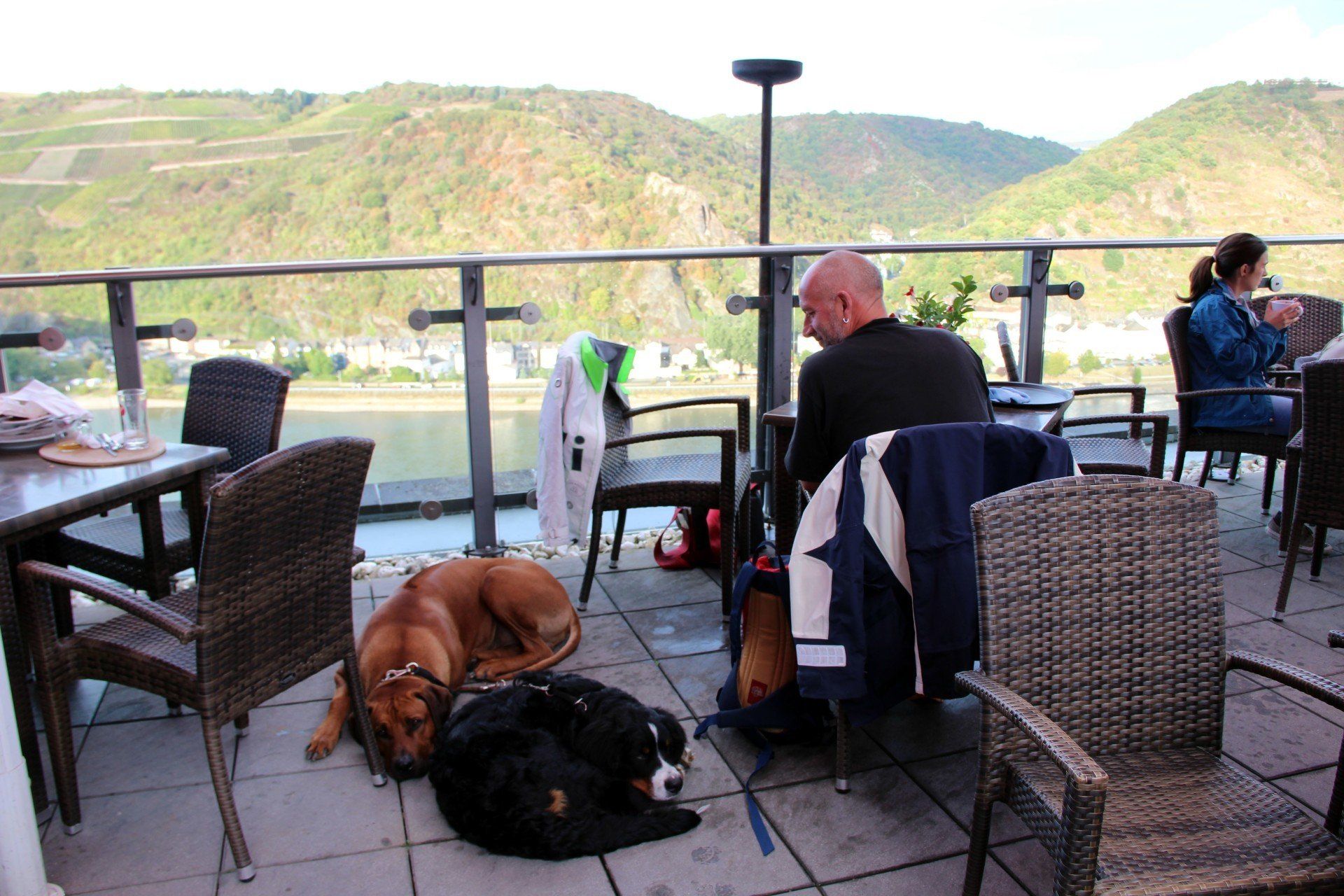 Mit der Fähre setzen wir über nach Sankt Goarshausen und lassen uns im Restaurant Rheingold Flammkuchen und frischen Federweißer schmecken.